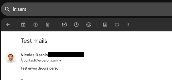 Dites "Test envoi depuis perso" pour identifier quel mail fait quoi et à quelle étape vous en êtes.